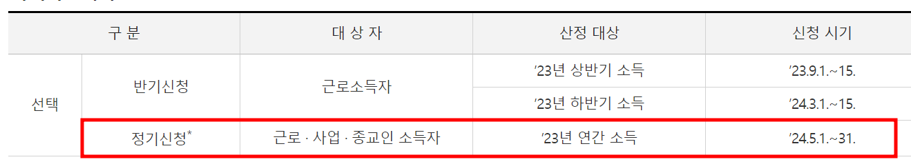 3. 반기신청은 '23년에 근로소득만 있어야 신청 가능 하였으나