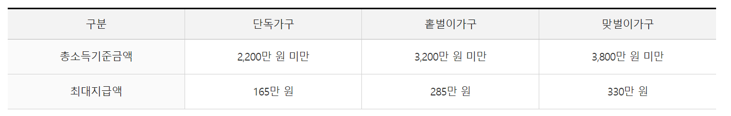 먼저 지난해(23년)에 소득이 있어야 합니다. 또한 재산기준도 정해져 있습니다.