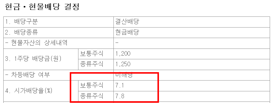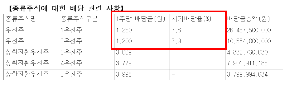 시가 배당률이 우선주 7.8% 입니다.