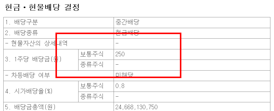 | 배당금 | 250원 |