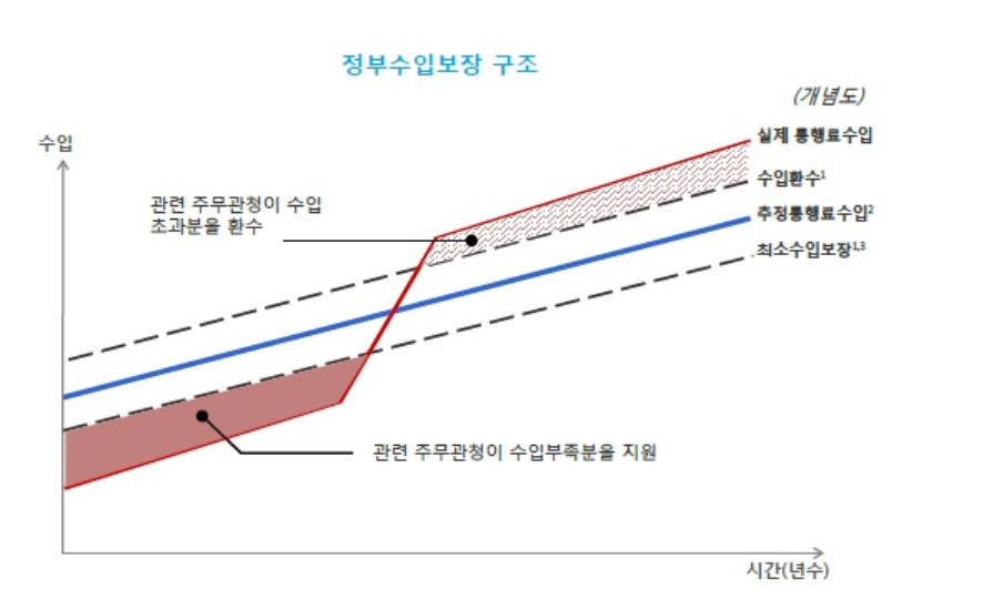민투법상 정부는 정부수입보장기간이라 해서 완공 후 일정기간 동안 정부가 수입을 보장 합니다.