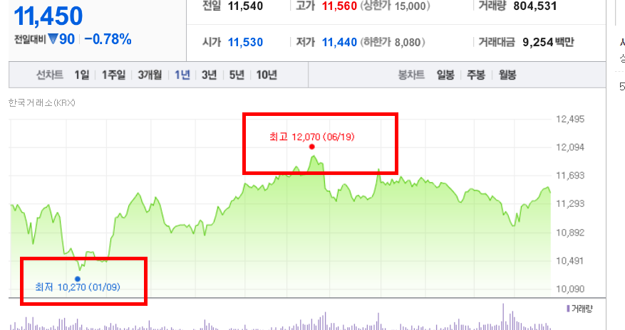 반면 맥쿼리인프라는 큰 반등도 하락도 없이 1년동안 박스권을 유지했습니다.