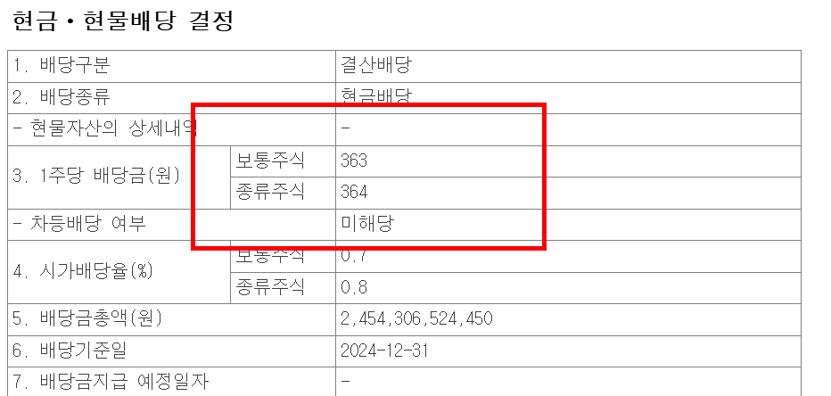 | 배당금 | 365원 | 367원 | 361원 | - |