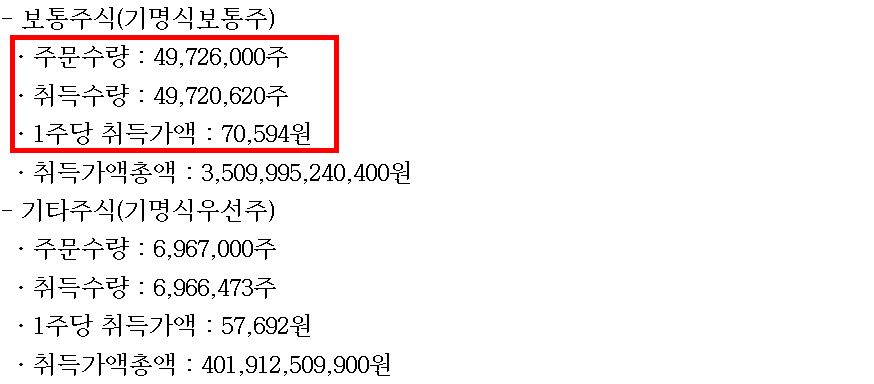 1. 25년 2월~5월사이에 7000억원의 보통주와 3000억원의 기타주식을 매입했습니다.