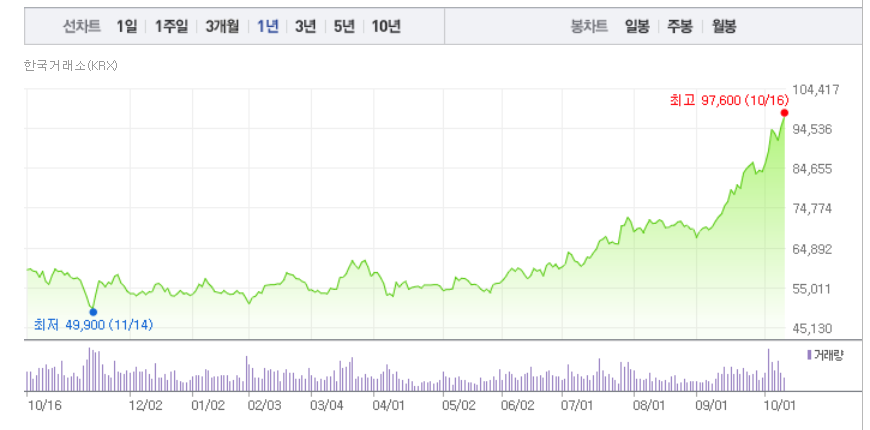 9만원을 돌파한지 얼마 안되었는데 벌써 10만원을 향해 나아가고 있는 차트를 보면