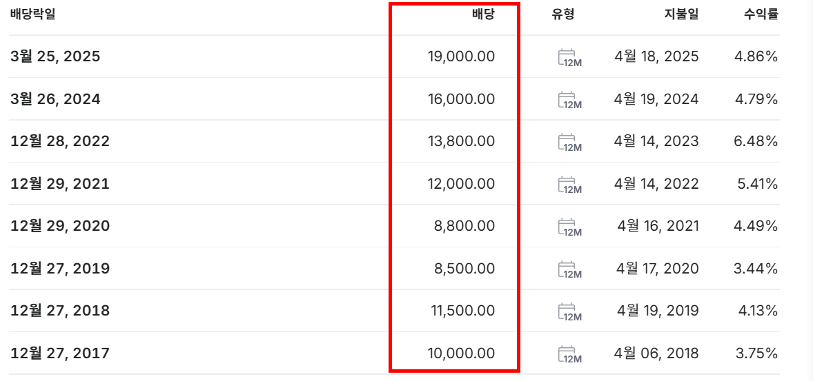 연간 배당금 상향 기조를 유지하며 장기 투자자 신뢰를 쌓아왔습니다.