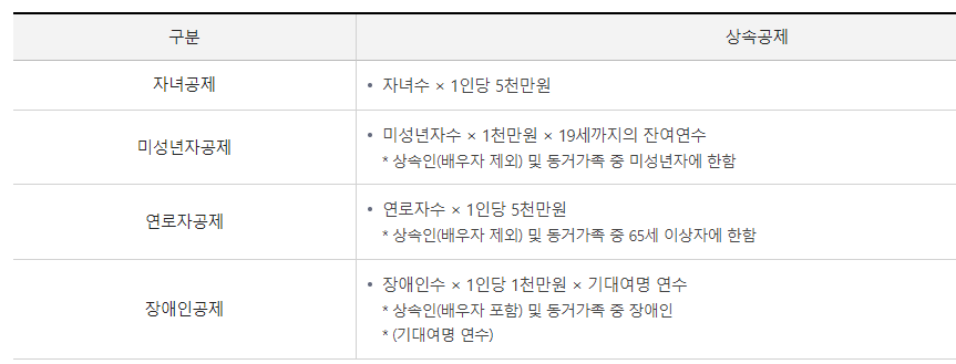 상속세는 자녀와 미성년자 공제, 연로자공제, 장애인 공제로 나눠집니다.