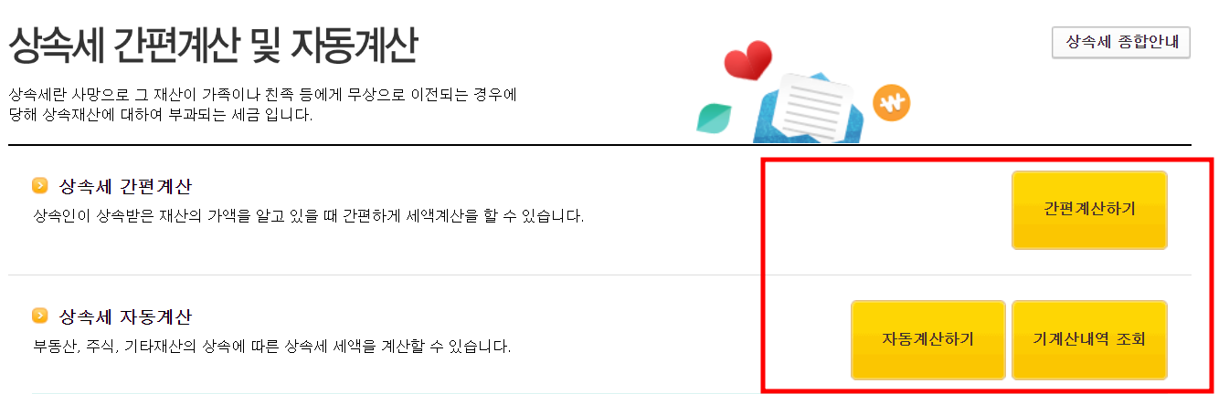 예상 증여세와 상속세를 알고 싶은 분은 국세청 홈페이지에 들어가셔서 계산해 보세요.
