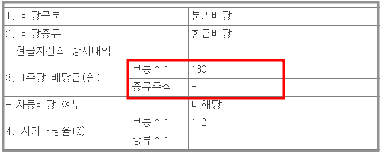 시가 배당률은 4.5% 이며 이 것은 2,3분기 360원을 제외하고 계산한 것입니다.