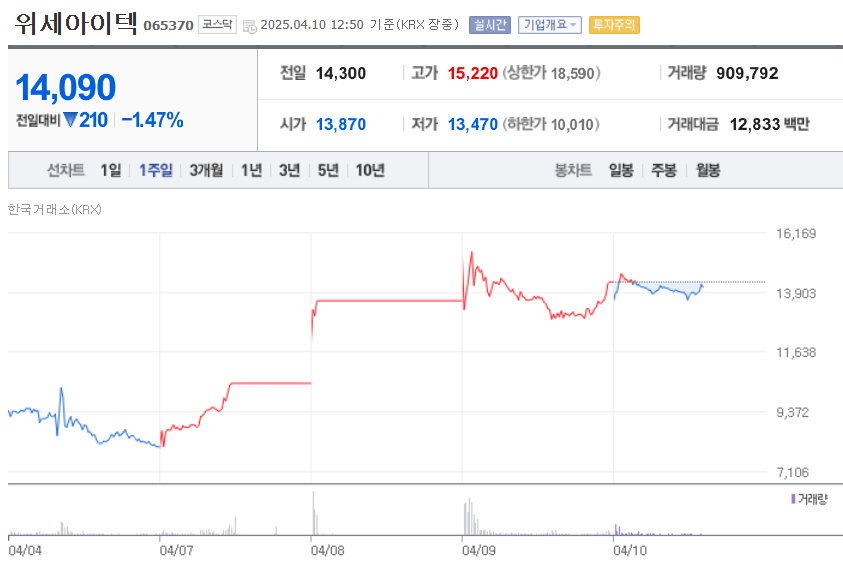 인맥주로 분류되어 있는 위세아이텍은 오너가 이재명 전 대표 부인인 김혜경씨의 친인척으로 알려져 있어 이재명 테마주로 부각되었습니다.