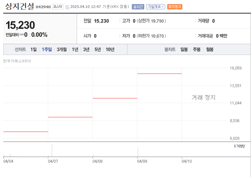 4연상 뒤에 1일 거래정지까지 간 상지건설은 상지건설의 과거 사외이사였던 인물이 이재명 캠프에 참여한 이력이 있습니다. 인맥으로 인해 이재명 테마주로 묶여져 있습니다.