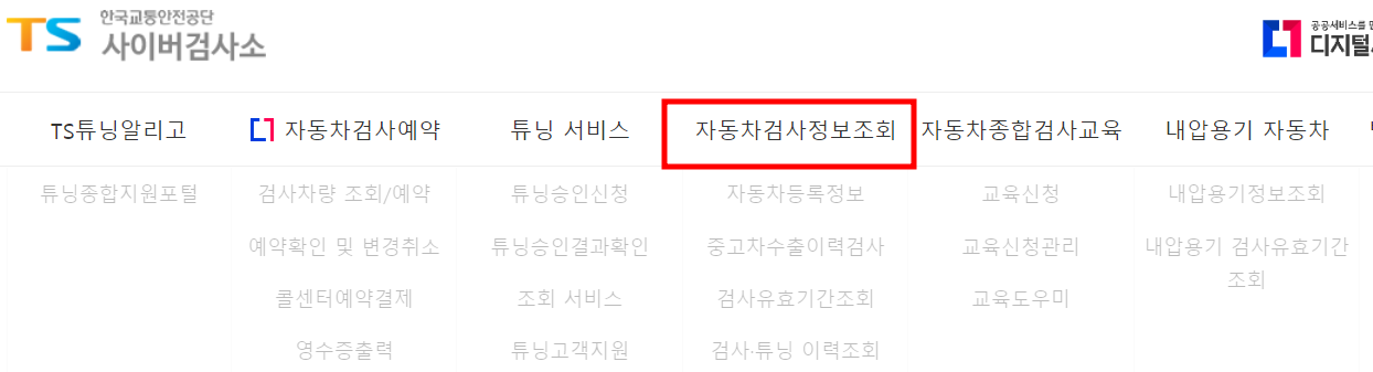 1. 한국교통안전공사 홈페이지→ 자동차 검사정보조회