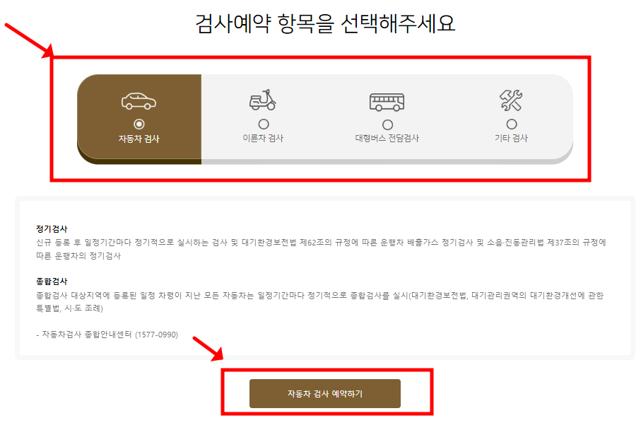 2. 자동차검사예약을 클릭하시면 검사할 차의 종류를 선택하시면 됩니다.