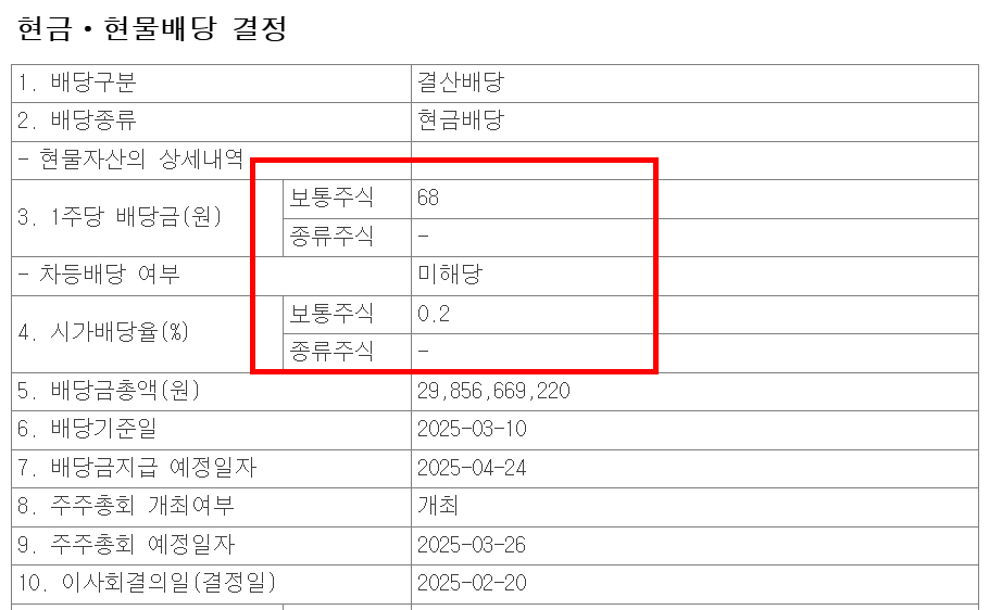 카카오는 24년 12월에 3개년 배당계획을 발표했습니다. 카카오는 26년까지 3개년동안 잉여금의 30%를 배당금으로 지급하기로 했습니다. 24년 배당수익률은 주당 0.2%로 다른 기업에 비해 작은 편입니다.