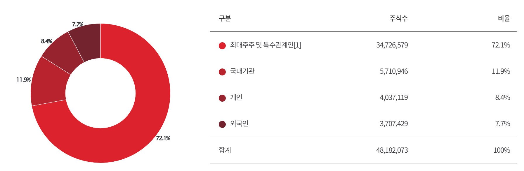 3. 그 밖의 주주로는 국내 기관, 개인, 외국인 주주 등이 있으며, 소액주주 지분도 일정 부분 차지하고 있습니다