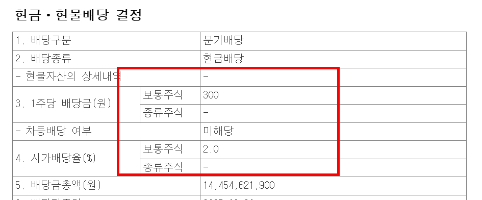 최근에도 주당 배당금 300원을 지급하겠다는 공시가 나왔습니다.