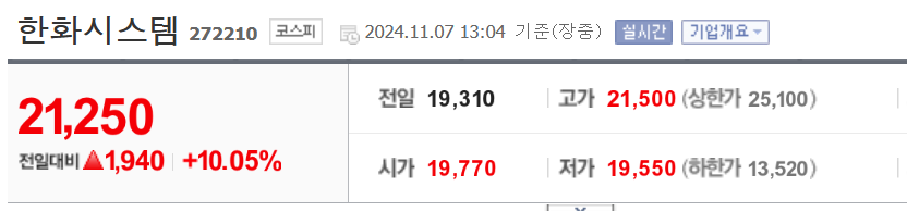 방산/위성에 관련된 회사인 한화시스템은 다른 여타 한화주와 마찬가지로 트럼프의 우주/방산 관련 공약으로 인해 트럼프주로 엮여져 있습니다. 당선 다음날 9% 상승하였습니다.