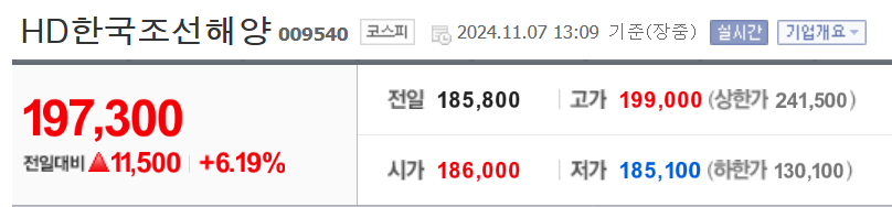 트럼프 당선인이 당선 다음날 한국과 전화통화중 조선 산업에 협력하자고 콕 찝어 발언한 다음 조선주에 관련된 주가 모두 상승중입니다. HD한국조선해양은 장중 6%가 오르면서 조선주의 면모를 보여주고 있습니다.