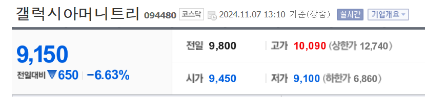 7천원대에서 3일만에 10,000원을 찍고 숨고르기 중인것으로 보여집니다.