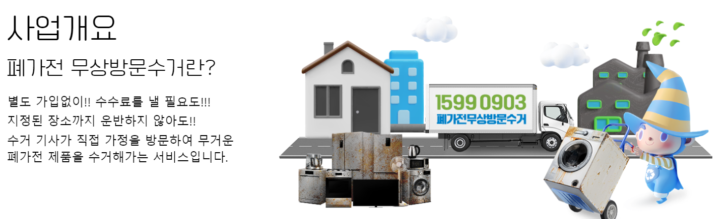 냉장고, TV등 옮기기 어려운 폐가전을 직접 집으로 와서 무료로 수거해주는 시스템은