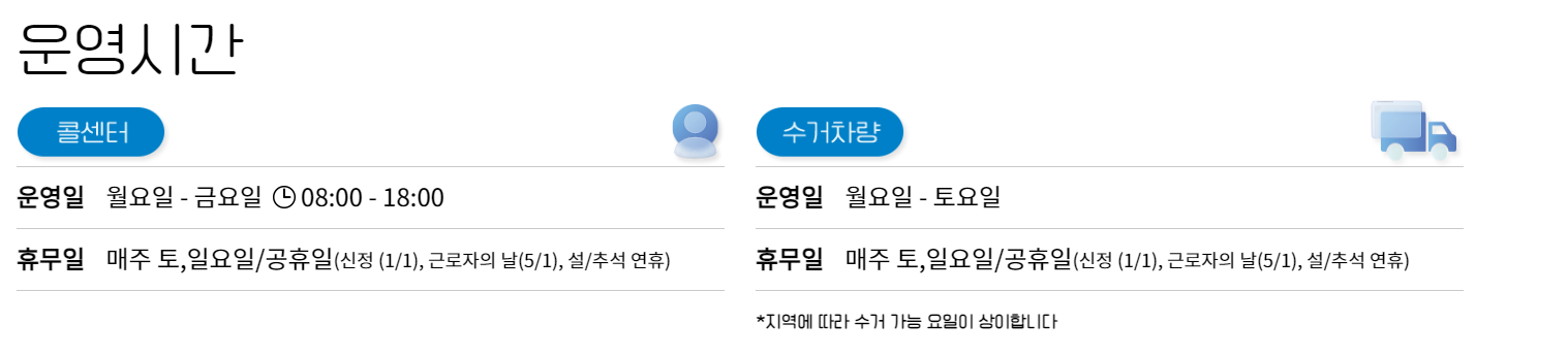 또한, 사다리차와 같은 장비를 사용하지 않고 사람의 인력으로 제품을 수거하고 있기 때문에 수거기사님이 현장상황 확인 후 수거가 어려울 경우, 별도 안내 해드리고 있습니다.