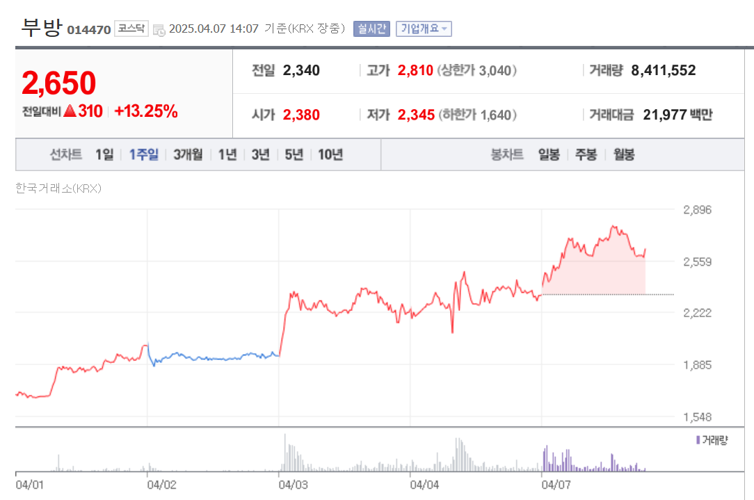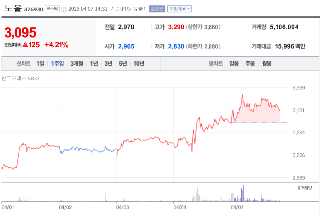 일주일 주가의 흐름을보면 계속해서 우상향입니다.