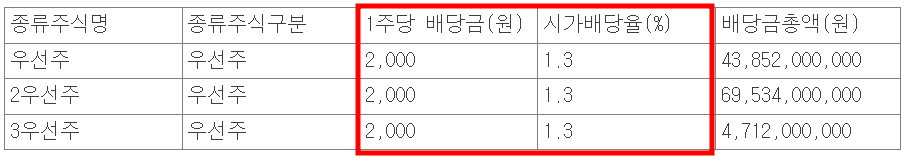 시가 배당율도 1.3%로 동일합니다.