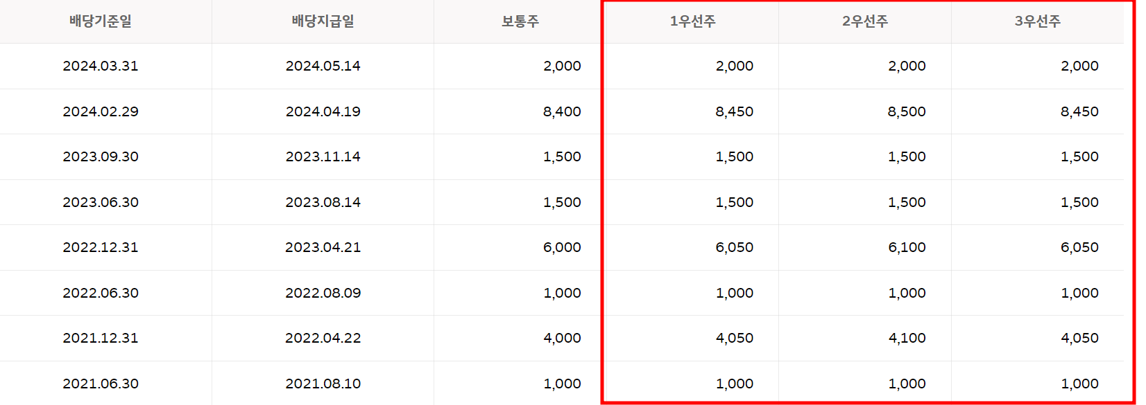 우선주 배당이력