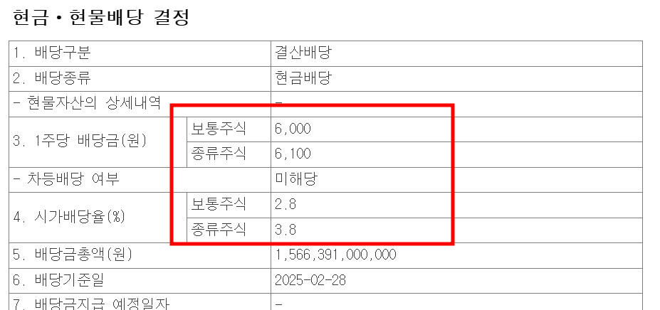 총 배당금: 2025년 한 해 동안 보통주 기준 총 16,500원(분기 배당 10,500원 + 결산 배당 6,000원)이 지급될 예정입니다.