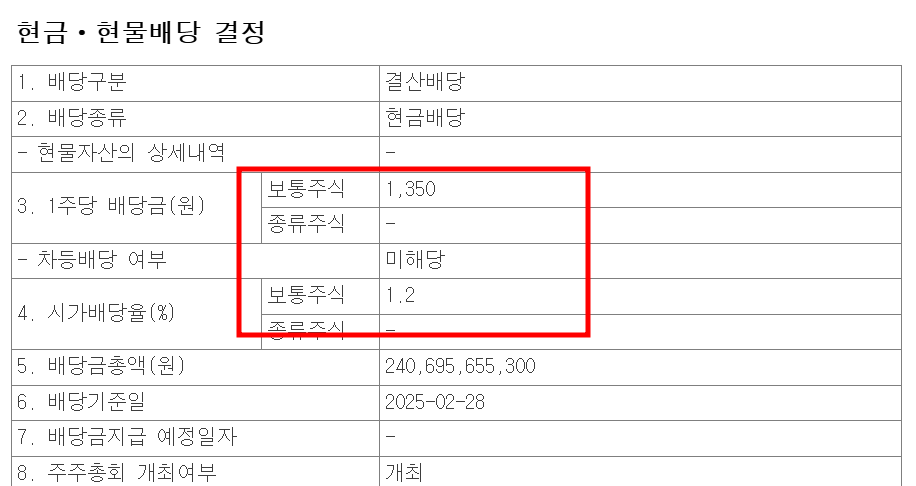 배당기준일 : 25년 2월 28일