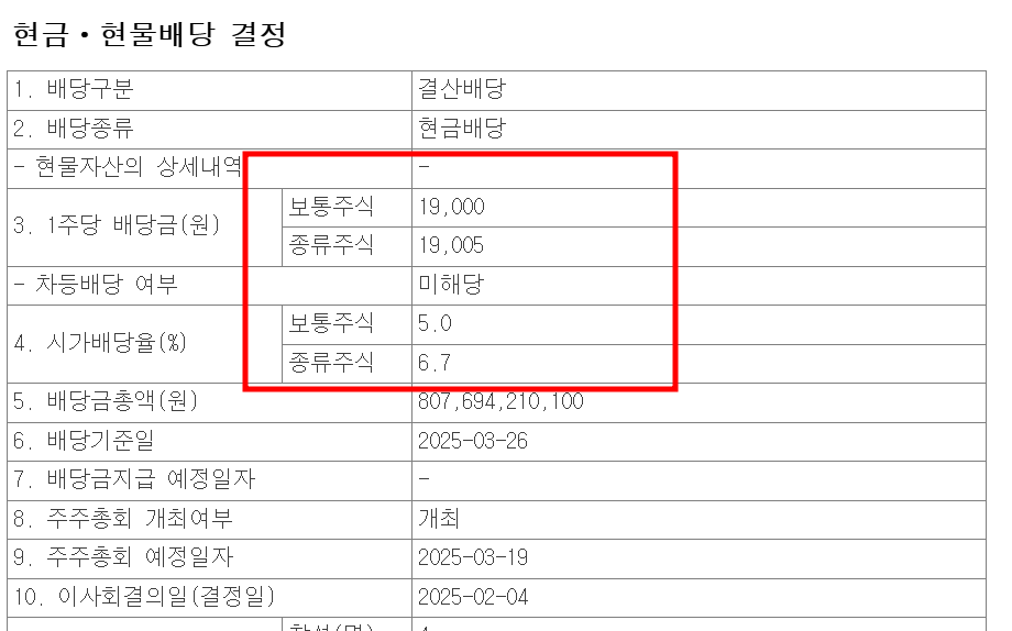 배당락일 : 25년 3월 25일
