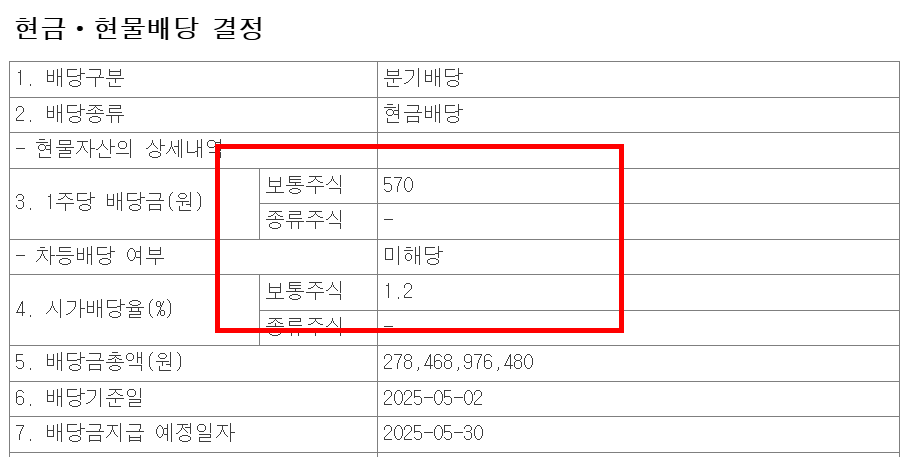 배당기준일: 25년 5월 2일