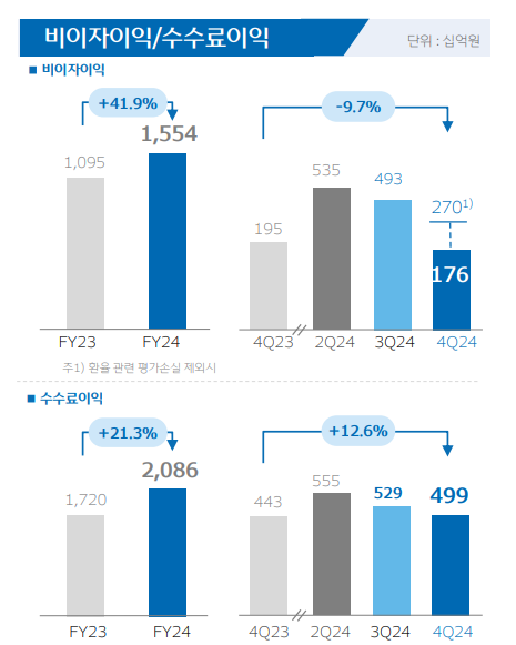 비이자이익이 1조 5천5백억원을 기록하여 22년 대비 41%나 늘어났으며 비은행계열의 수수료이익도 23%늘어났습니다.