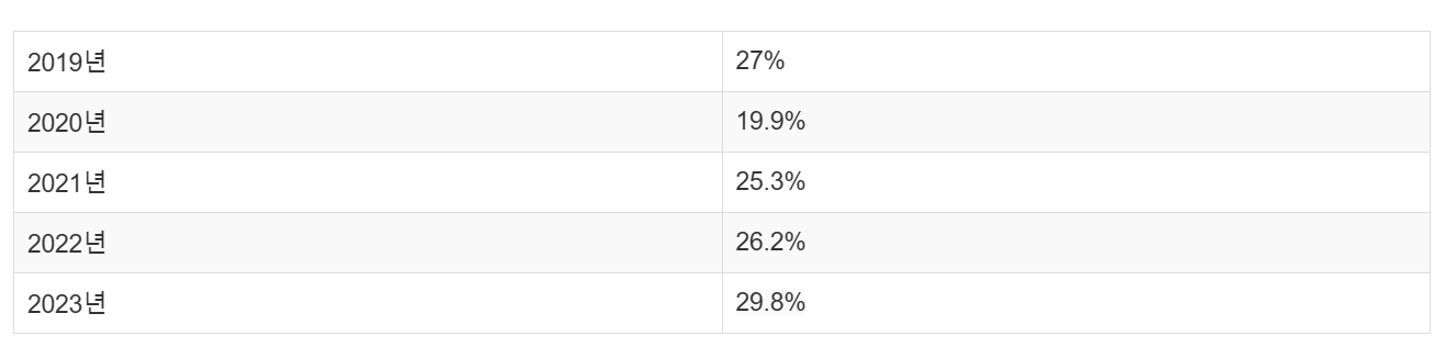 2020년: 3.6% (코로나 영향) 2021년: 6.8%