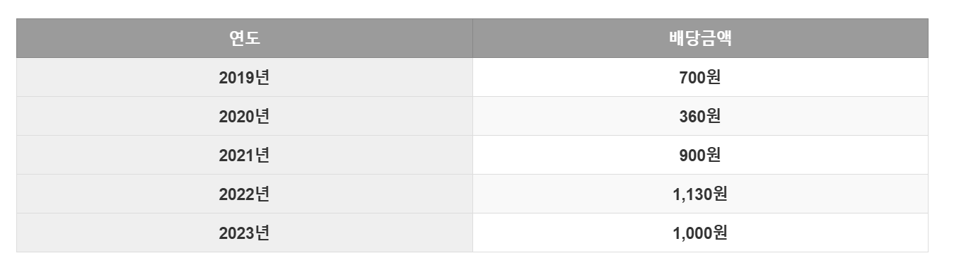| 배당금 | 180원 | 180원 | 180원 | 700원 이상 예상 |