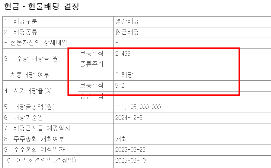 배당 측면에서는 2025년 예상 배당수익률이 약 5.2%로, 안정적인 배당 매력을 유지할 것으로 보입니다. 하지만 노무비 증가 등 비용 상승 요인이 있어 수익성에 영향을 미칠 수 있으므로, 투자 시 유의하는 것도 좋을 듯합니다.