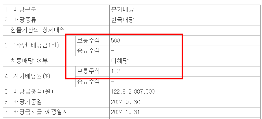 | 배당금액 | 500원 | 500원 | 500원 | 미정 |