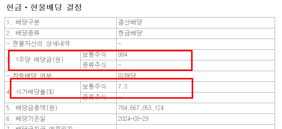 예를들어 100주를 가지고 계신 분은 98400원을 배당금으로 받을 수 있으며 모두 현금으로 지급됩니다.
