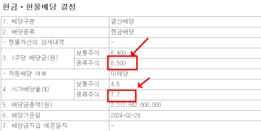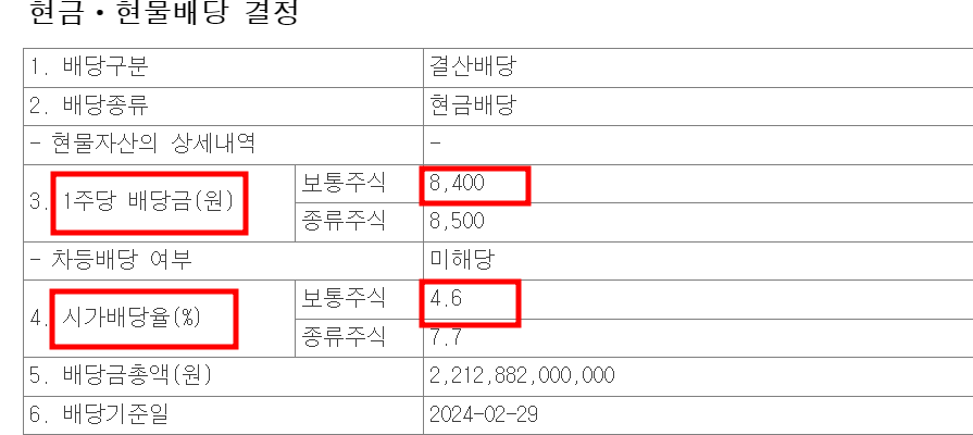 ③ 배당금 : 주당 8400원