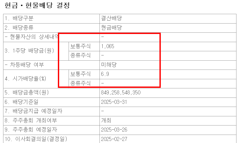 | 배당금 지급일 | 26년 4월 마지막주 |