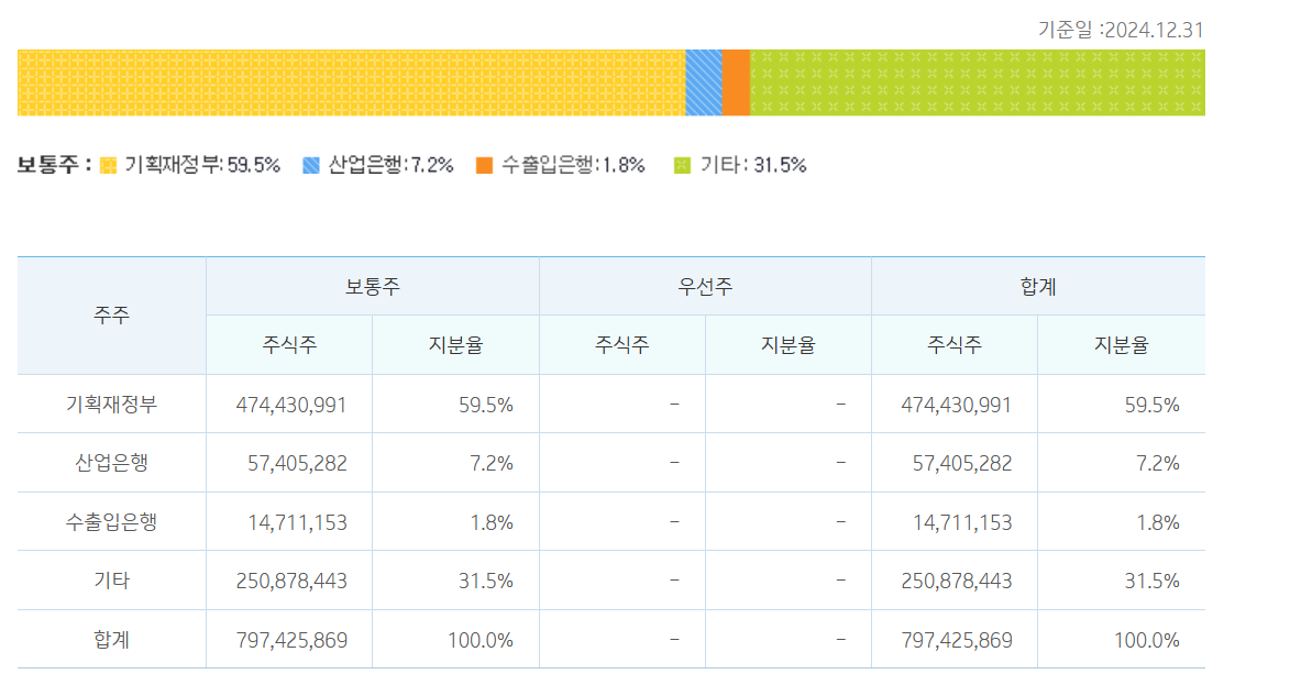 기업은행은 다른 사기업과 다르게 정부의 지분이 50%가 넘는데요.