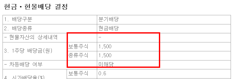 1. 분기배당 실시 (연 4회)