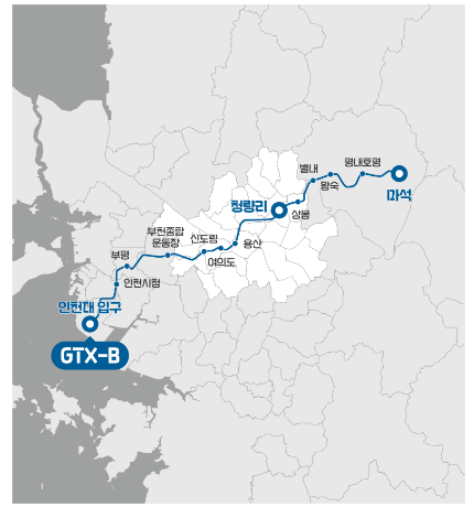 GTX B 역은 강남을 거치지 않아서 사업성이 떨어진다는 이야기가 있지만 3기 신도시와 연결된다는 점에서 고무적인 노선입니다.