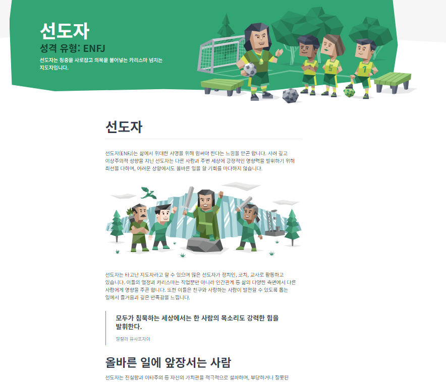 MBTI 검사를 마치면 다음과 같이 자신의 성격 유형에 대해 설명해 줍니다.