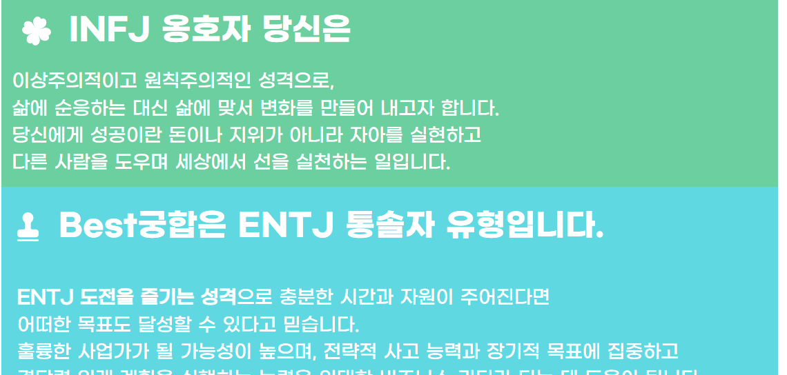 MBTI로는 이러한 사람들 간의 궁합 또한 알 수 있습니다.