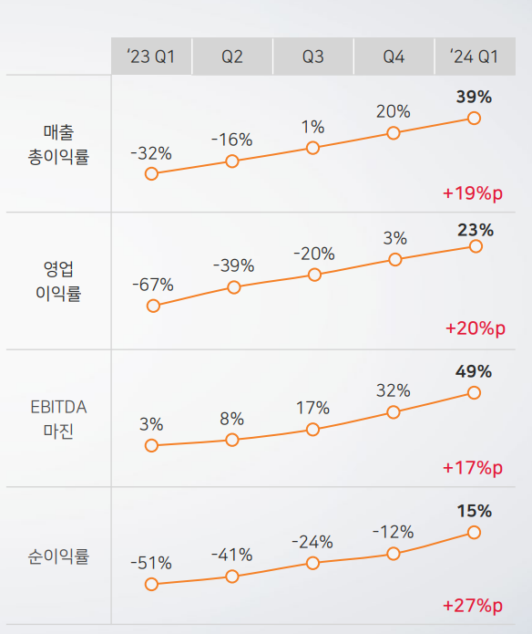 다만 23년 4분기 실적이 흑자로 전환하여 턴어라운드를 할 수 있는 발판이 되어주었습니다.
