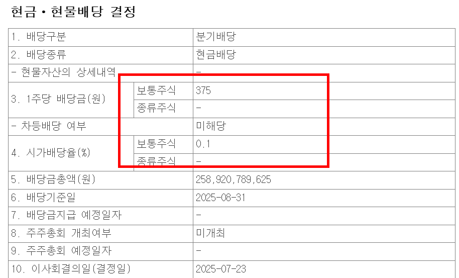 A2. 2025년 2분기 기준 배당락일은 8월 28일입니다.